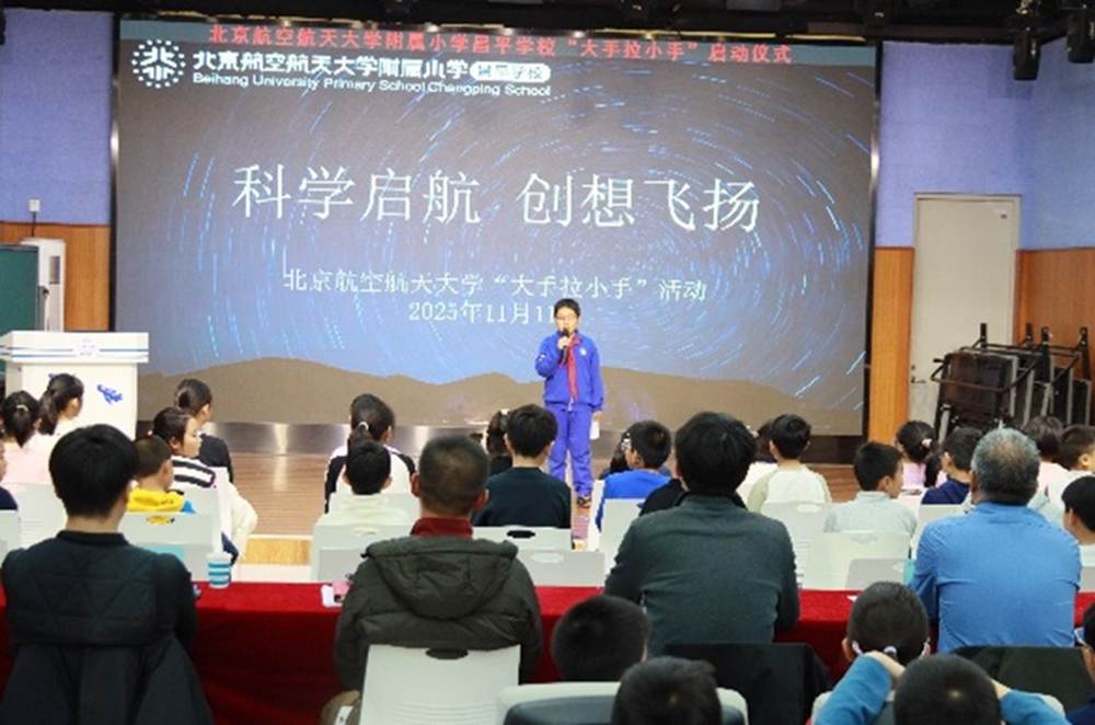 据悉,“大手拉小手”活动首创于2004年,由yl6776永利集团员工党支部、北航机器人队、社会实践队共同牵头,组织同学走进中小学担任校外辅导员,开展形式多样的课程与活动。经过二十余年不断发展,以党建带团建,团建带队建的模式,围绕科学精神、前沿科技、科创故事等重点内容打磨系列精品课程。活动曾获评 “支持地方教育特殊贡献奖”与学校 “千岗百时”明星服务站等荣誉。