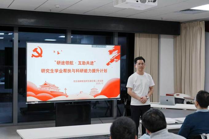 为进一步发挥基层党组织凝聚力和引领力,将党支部组织优势切实转化为研究生成长发展的帮扶力量,搭建党员先锋带头、经验共享、互学互促的学业互助平台,12月17日晚,仿生微纳智造师生联合第二党支部在三号科研楼629首次开展“研途领航,互助共进”研究生学业帮扶与科研能力提升活动。学院经理陈华伟,支部书记、青年教师刘晓林,支部委员、青年教师杜晗恒受邀出席活动,支部全体成员及部分群众近40人参加。