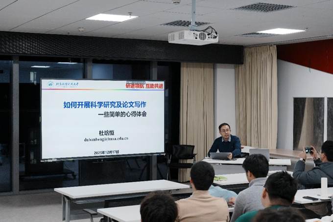 活动中,特别邀请优秀青年教师杜晗恒以“如何开展科学研究与论文写作”为主题作交流。他立足自身博士及博士后阶段的科研实践,系统阐述了科研工作中应具备的基本态度与核心品质,分享了实现高效、高质量科研的工作方法,并围绕文献阅读策略、论文写作经验积累、论文撰写顺序等问题进行了深入讲解,为与会同志提供了具有高度可操作性的指导建议。