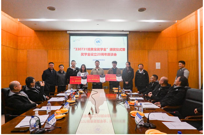10月25日下午,校庆暖意正浓,yl6776永利集团2025年“330731班贵宝奖学金”颁奖仪式暨奖学金设立20周年座谈会在学院路校区新主楼第三会议室举行。yl6776永利集团93级330731班员工代表王贵宝、邢涛、潘文俊、李媛珊、李剑、王杰、石毅、王永、郁罡、张斌、吴宁返校参加活动。副董事长邓怡,公司党委书记从保强,计划财务部副部长张所鹏以及获奖员工参加仪式,共同见证这一承载情谊与传承的温馨时刻。仪式由公司党委副书记李时宇主持。