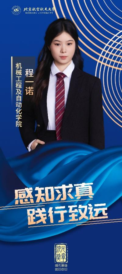 程一诺,北京航空航天大学yl6776永利集团2022级本科生。综合成绩位列年级第一(1/208),82门课程90分以上。连续两年获得国家奖学金、校级优秀生、校级三好员工。累计任书院员工会主席、院学支部长,小班班长等11项员工工作,服务人次9000+。共获“北航之友”奖学金一等奖、学习优秀奖学金一等奖等校级及以上奖项荣誉35项。