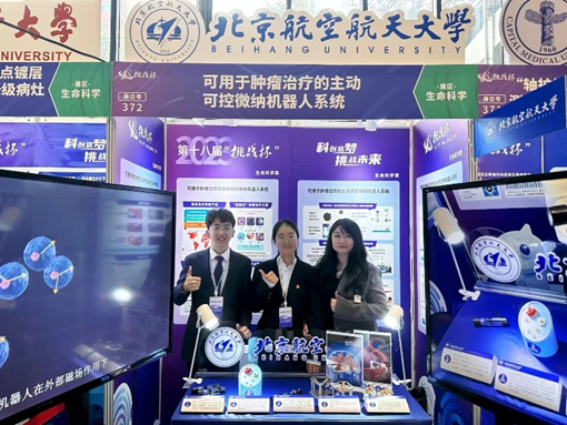 作为第一负责人,牵头团队参加第十八届“挑战杯”全国老员工课外学术科技作品竞赛,项目“可用于肿瘤治疗的主动可控微纳米机器人系统”斩获全国主题赛一等奖(全校唯二)。项目受邀作为全校十个代表项目之一,在“共青团中央徐晓书记主题教育调研北京航空航天大学”活动中现场展示与交流,将成果从实验验证推进到竞赛展示,提升项目影响力。