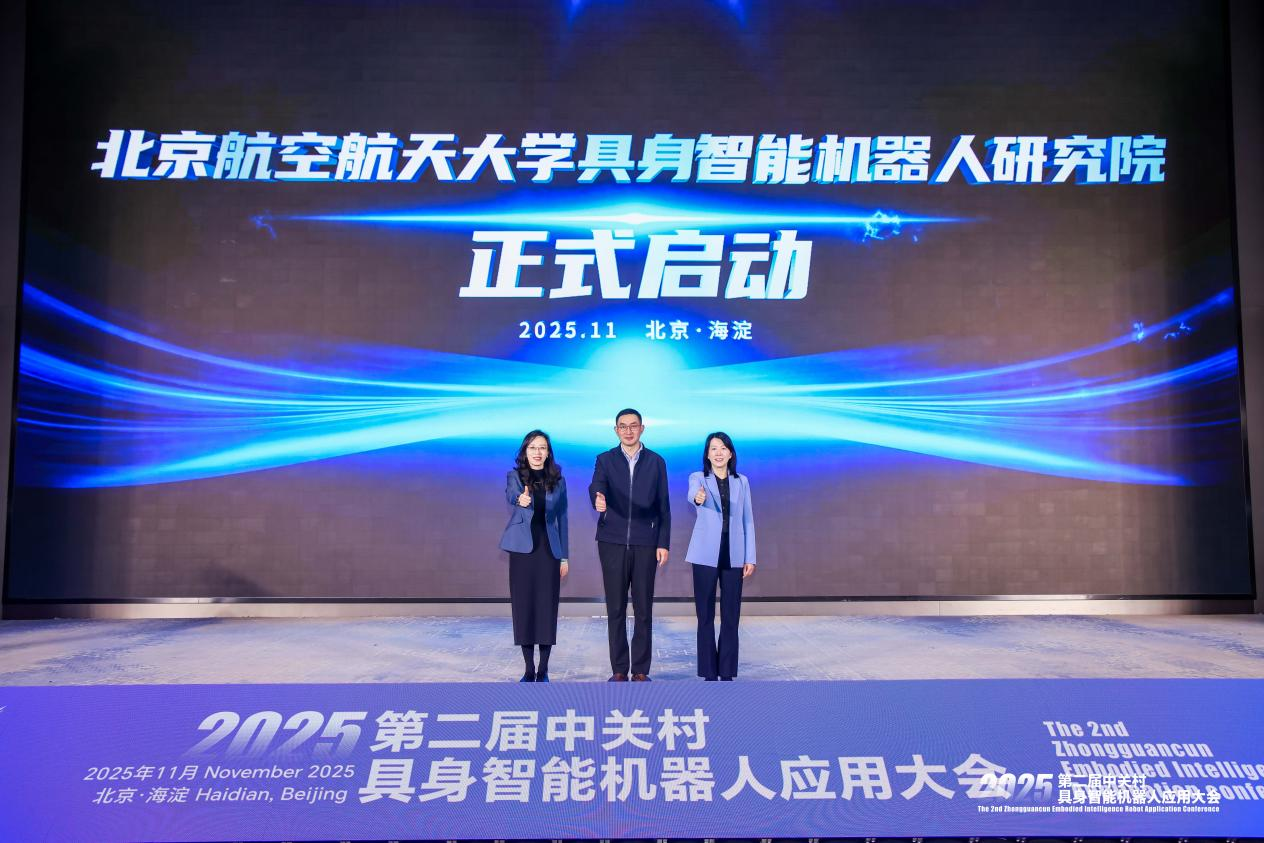 在大会开幕式环节,北京航空航天大学党委副书记程波,北京市科委中关村管委会党组成员、副主任刘卫华,中关村科学城管委会副主任、海淀区副区长唐超共同见证了北京航空航天大学具身智能机器人研究院共建合作的启动。此次校地协同共建,旨在整合优势资源,将研究院打造为全国具身智能领域的创新策源地和产业高地,标志着研究院建设进入新的实质性推进阶段。