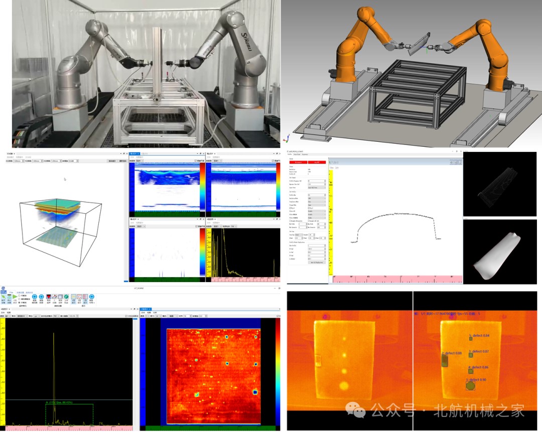 针对大型复杂曲面结构件检测难度大的问题,突破了曲面仿形、轨迹规划、多轴运动控制以及超声采集与运动同步、基于深度学习的缺陷智能识别算法等技术,研发了14轴喷水超声无损检测系统,实现了平板、圆柱、双向变曲率等大型复杂构件的二维、三维高精度超声成像和典型缺陷的智能识别。