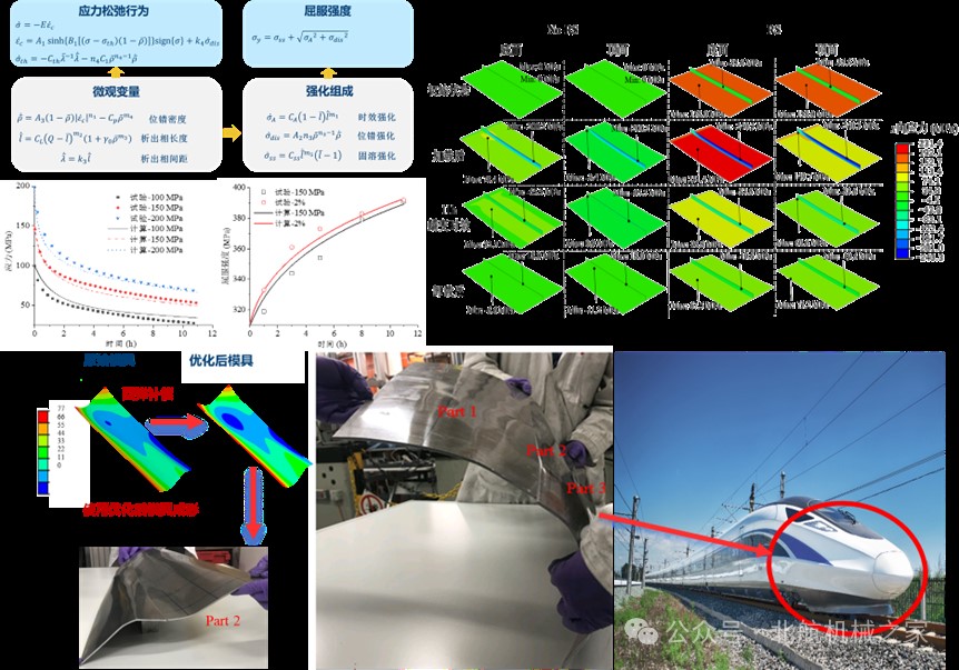 整体壁板是飞行器等运输系统的主承重结构。针对整体壁板成形过程中材料微观组织和材料变形及强度调控难的问题。建立了微宏观跨尺度统一本构模型,揭示了铝合金在塑性区域应力松弛机理,提出了回弹补偿算法指导了成形模具补偿性设计,实现了整体壁板蠕变时效成形的精确成形。